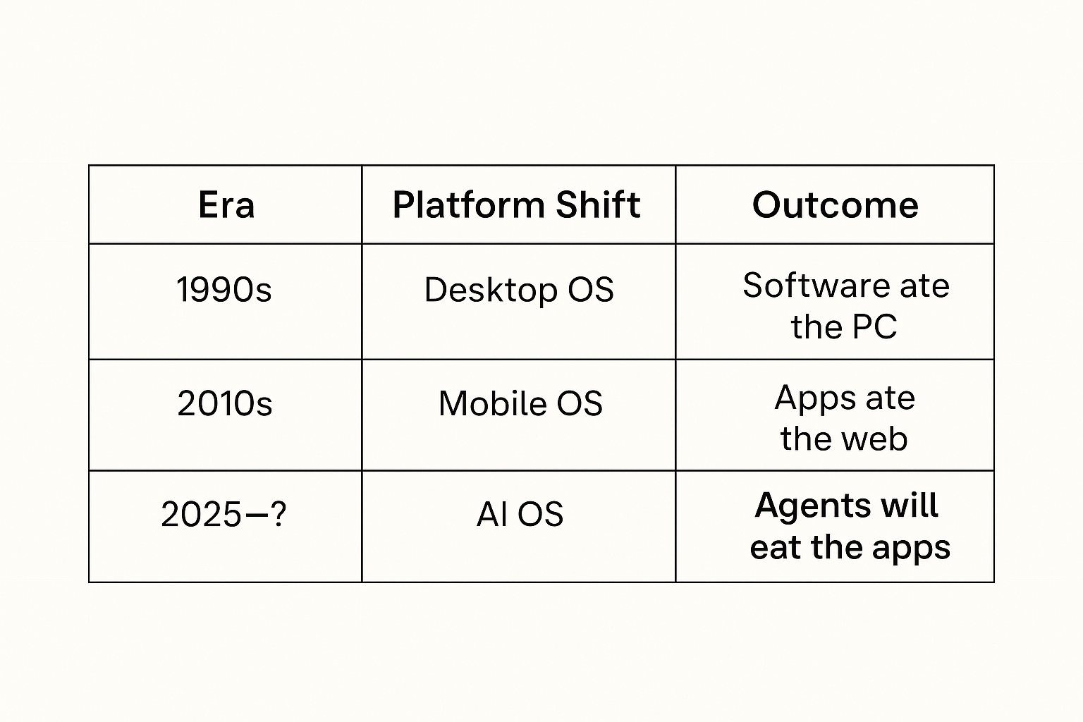 The AI OS isn’t just another product wave. It’s a paradigm shift, from apps to agents, from clicks to intent, from usage to orchestration.